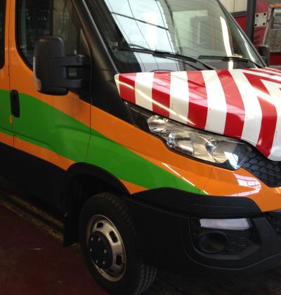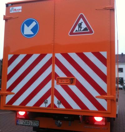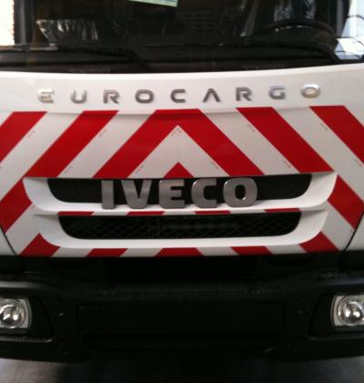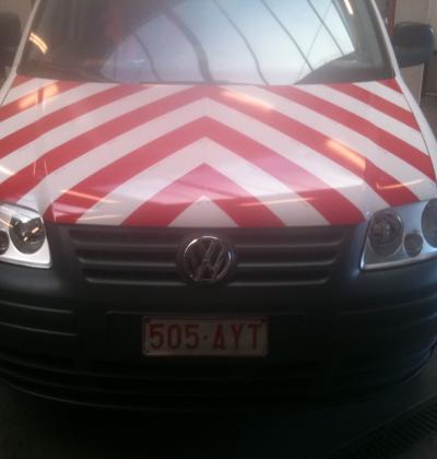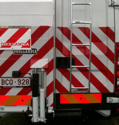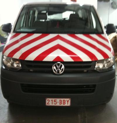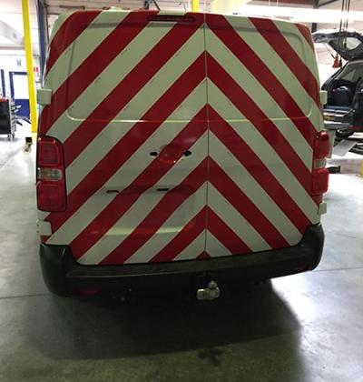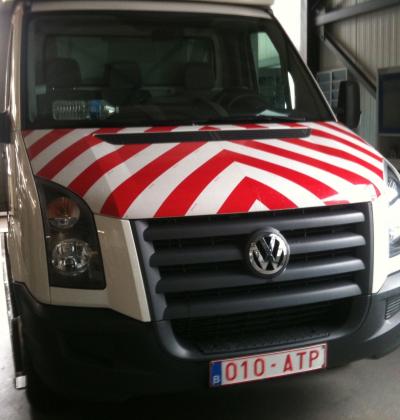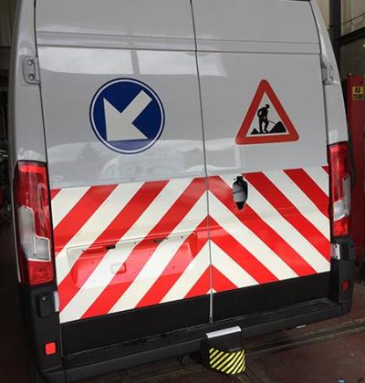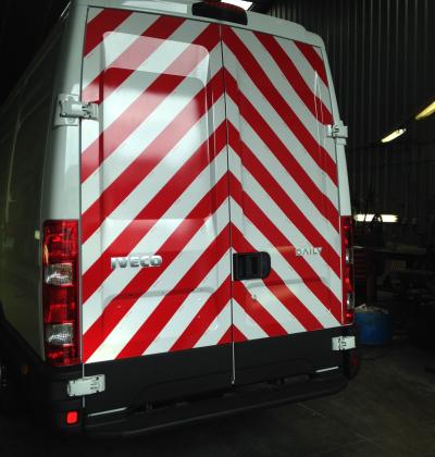 Accueil I Réalisation I Lettrage véhicules I Striage 3M réfléchissant rouge et blanc